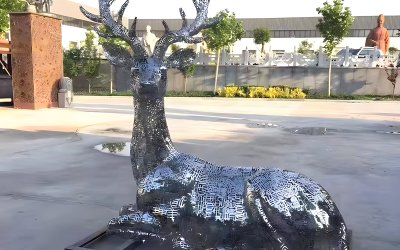 文字拼接不銹鋼鏤空梅花鹿雕塑